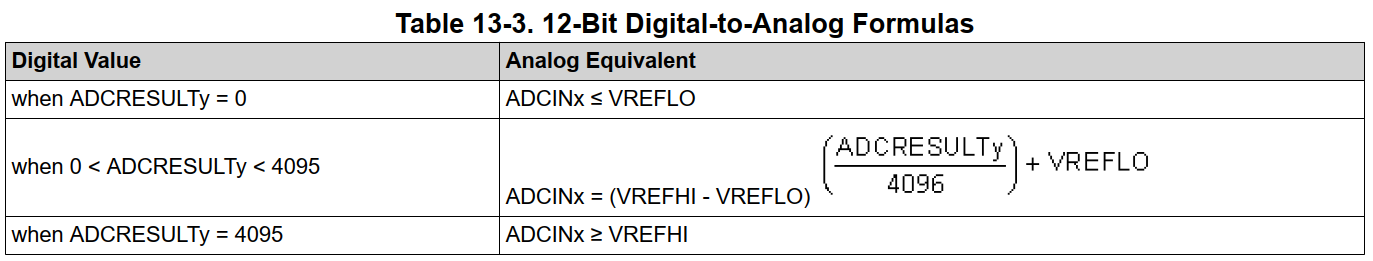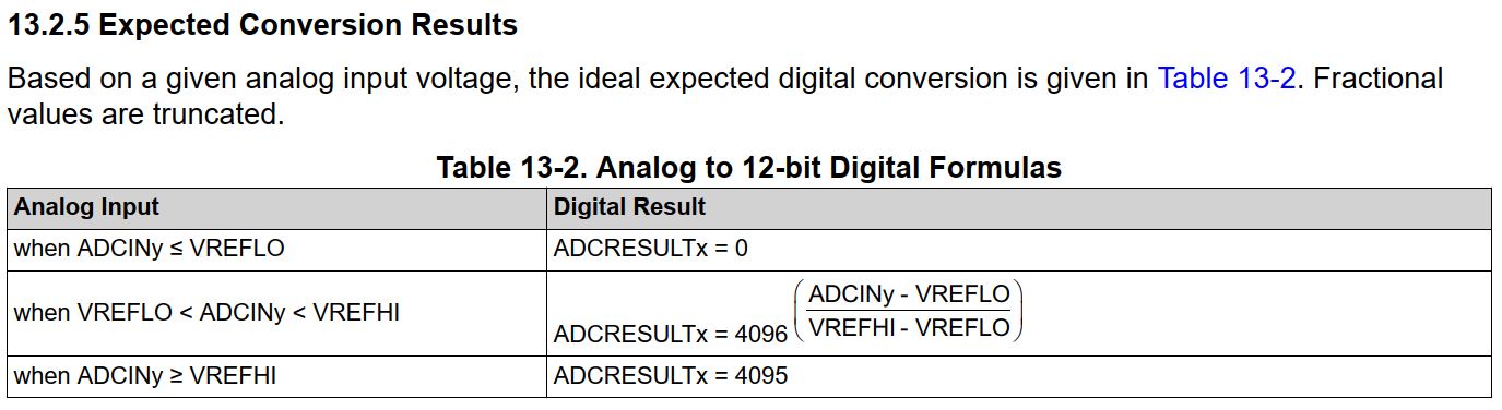 TMS320F28004x是12位元的ADC,數位的結果計算方式如圖: